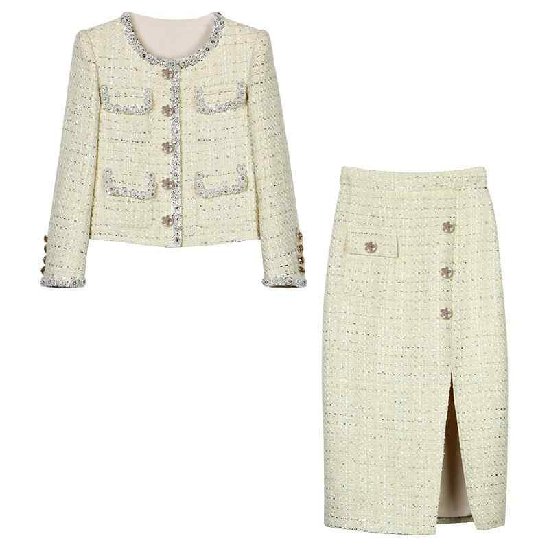 ・スカート丈: ミディ丈・人気要素: ビーズ飾り、パッチワーク・加工: ビーズ刺繍・生地名: ツイード・主な素材: ポリエステル・カラー展開: ライトイエロー・サイズ展開: S、M、L、XL、XXL・スタイルタイプ: エレガント通勤・スタイル: 通勤スタイル・セットアップタイプ: スカートセットアップ・対象性別: 女性・袖タイプ: レギュラー袖・袖丈: 長袖・カテゴリ: カジュアルセットアップ