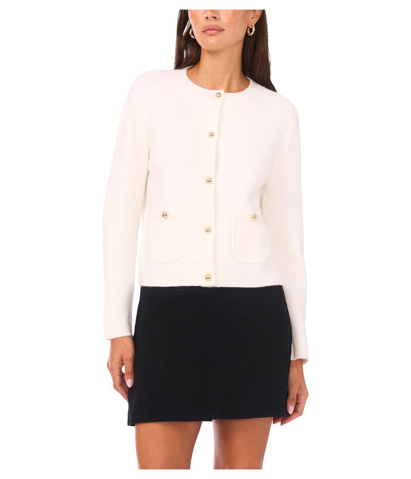 ヴィンスカムート レディース アウター ニット・セーター カーディガン Vince Camuto Long Sleeve Cardigan with Patch Pockets Antique White ホワイト