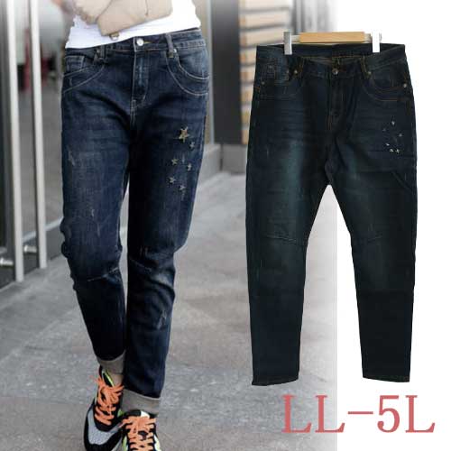 \全品送料無料11/27まで / 大きいサイズ レディース 星スタッズ パンツ デニム ジーンズ ゆったり パンツ PANTS pants sexy 大きめ ボトムス ブラックフライデー