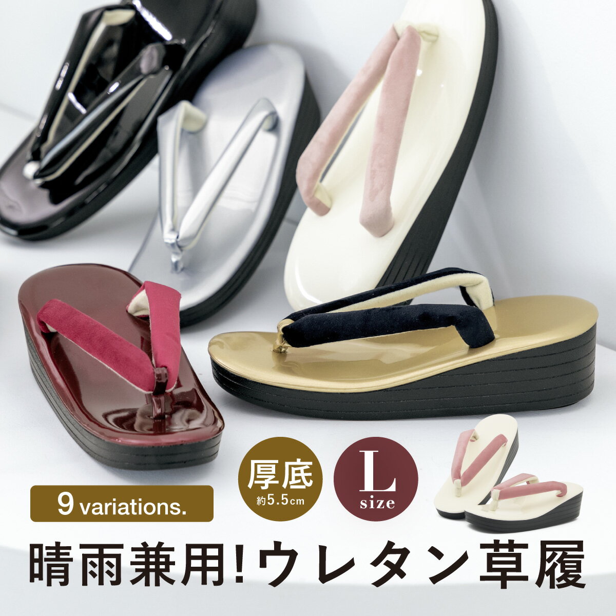 草履 レディース カジュアル 小紋 紬 色無地 普段使い 付下げ 着物 女性 シンプル 白 赤 紫 黒 金 銀 ピンク エナメル ベロア 厚底 Lサイズ 30代 40代 50代 送料無料