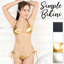 【送料無料】水着 ビキニ 三角ビキニ レディース トライアングルビキニ シンプル 無地 ビキニ コスチューム 黒 白 ゴールド シルバー コスプレ 衣装