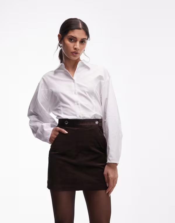 アンドアザーストーリーズ レディース ボトムスカート ミニ ベルベット & Other Stories button detail velvet mini skirt in dark brown ブラウン