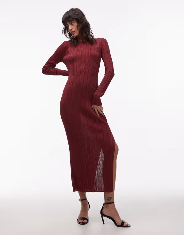 アンドアザーストーリーズ レディース トップス ワンピース ドレープ メッシュ & Other Stories draped mesh midaxi dress in wine ワイン