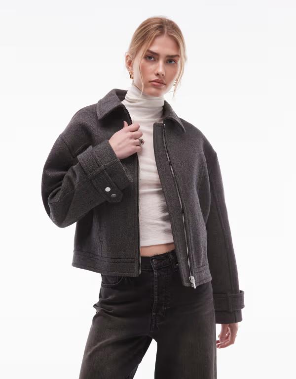 アンドアザーストーリーズ レディース アウター ジャケット・ブルゾン ウール & Other Stories wool rich shortwill jacket in dark GRAY グレー