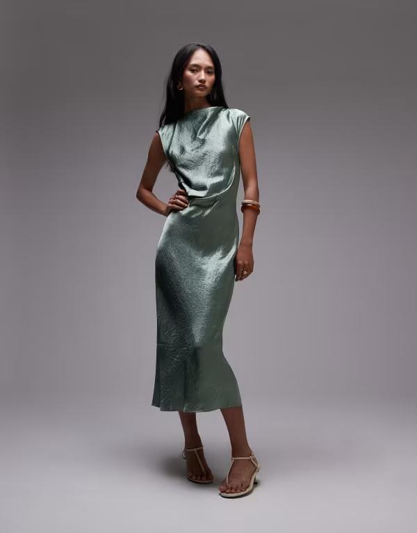 アンドアザーストーリーズ レディース トップス ワンピース ドレープ ミディ サテン & Other Stories bias cut satin midi dress with drape detail GREEN グリーン