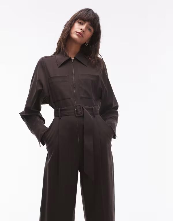 アンドアザーストーリーズ レディース トップス ジャンプスーツ ウール & Other Stories wool blend long sleeve utility jumpsuit in dark brown ブラウン