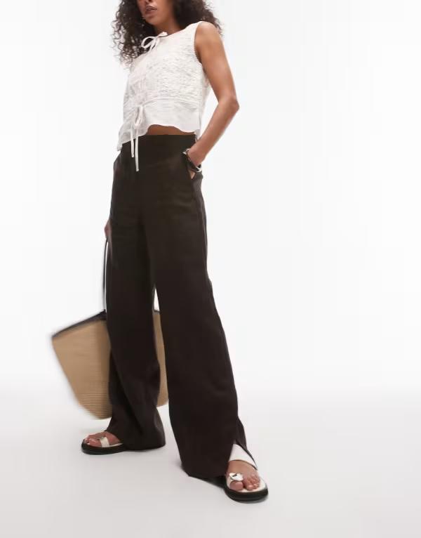 アンドアザーストーリーズ レディース ボトムス カジュアルパンツ リネン & Other Stories linen pants in dark brown ブラウン
