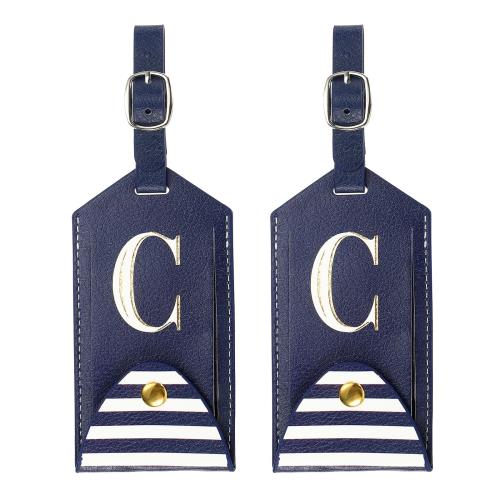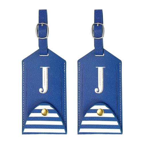 PATIKIL 荷物タグ PUレザー 刺繍入りスーツケースタグ レタートラベルタグ プライバシー保護ラベル 旅行手荷物スーツケース用 ブルー