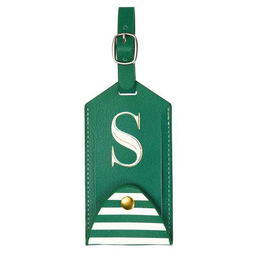 PATIKIL 荷物タグ PUレザー 刺繍入りスーツケースタグ レタートラベルタグ プライバシー保護ラベル 旅行手荷物スーツケース用 緑