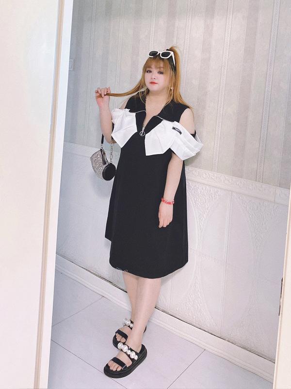 ワンピース レディース オフショルダー ジップアップ 春夏 大きいサイズ ぽっちゃり カジュアル 膝丈 おしゃれ 着痩せ ショッピング 旅行 黒