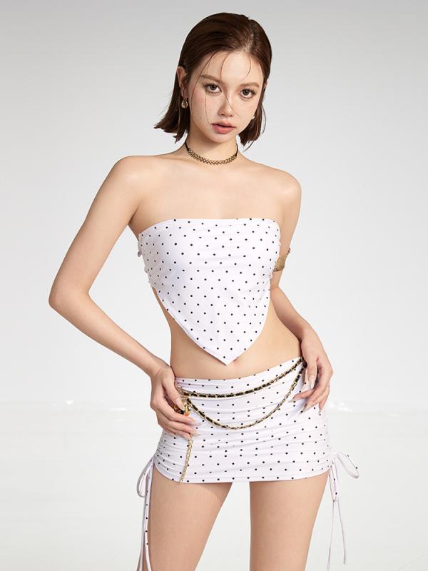 水着 レディース 韓国風 セパレート ビキニ チューブトップ バンドゥ レトロ ドット柄 水玉模様 白黒 大人セクシー 体型カバー 胸パッド付き ノンワイヤー 海 プール 温泉 リゾート 海外旅行 春夏 ナイロン スイムウェア