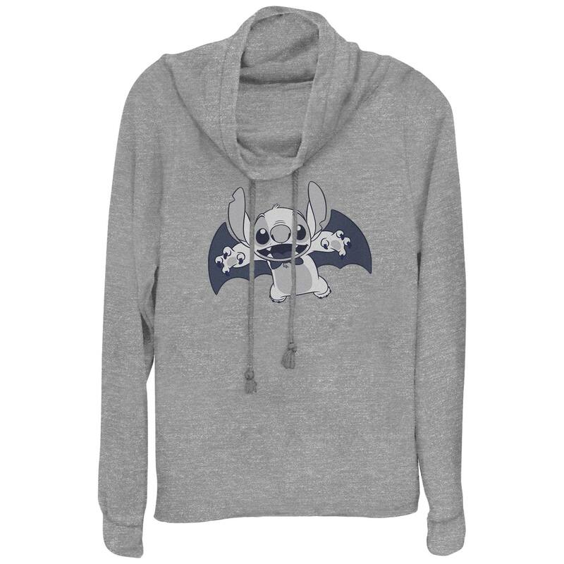 【送料無料】 ディズニー レディース Tシャツ トップス Disney's Lilo & Stitch Vampire Stitch Women's Cowlneck Graphic Lightweight Long Sleeve Gray Heather