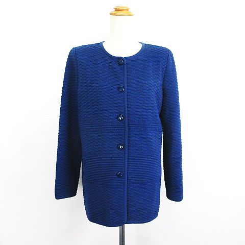 【中古】レリアン Leilian VITTORIO Per Leilian ニット ノーカラージャケット 長袖 ウール 42 ブルー ※EKM レディース 【ベクトル 古着】 240717