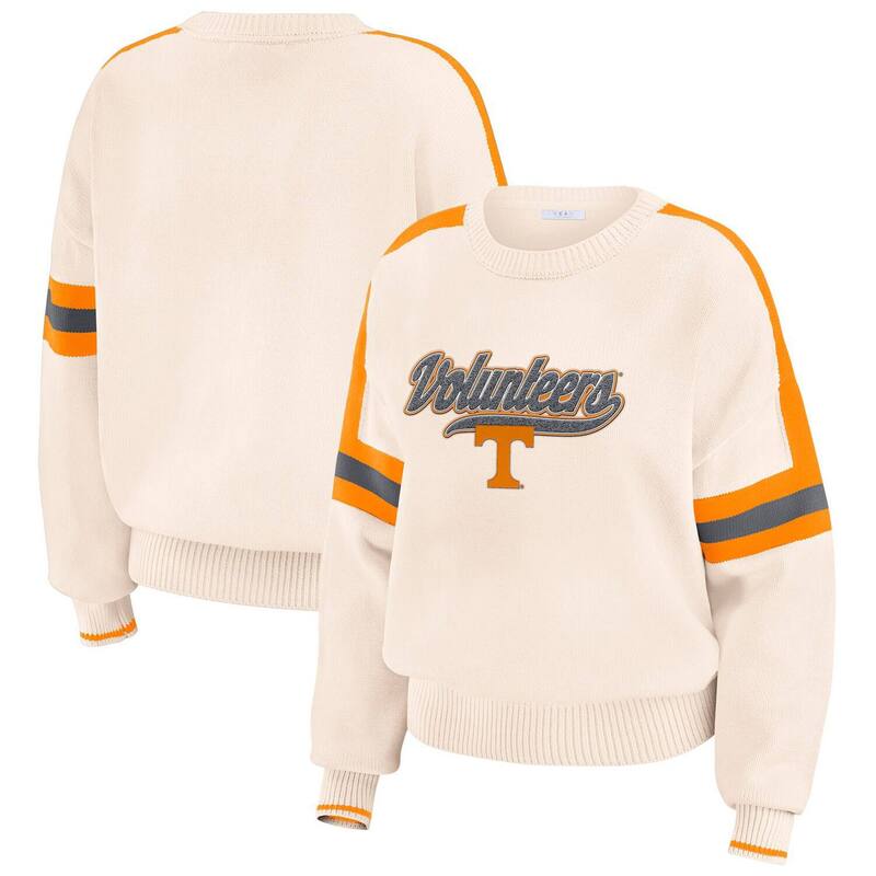 ウェア バイ エリン アンドルーズ レディース アウター ニット・セーター Tシャツ スウェット シャツ Women's WEAR by Erin Andrews Cream Tennessee Volunteers Chenille Woven Patch Stripe Pullover Sweatshirten Beige ベージュ