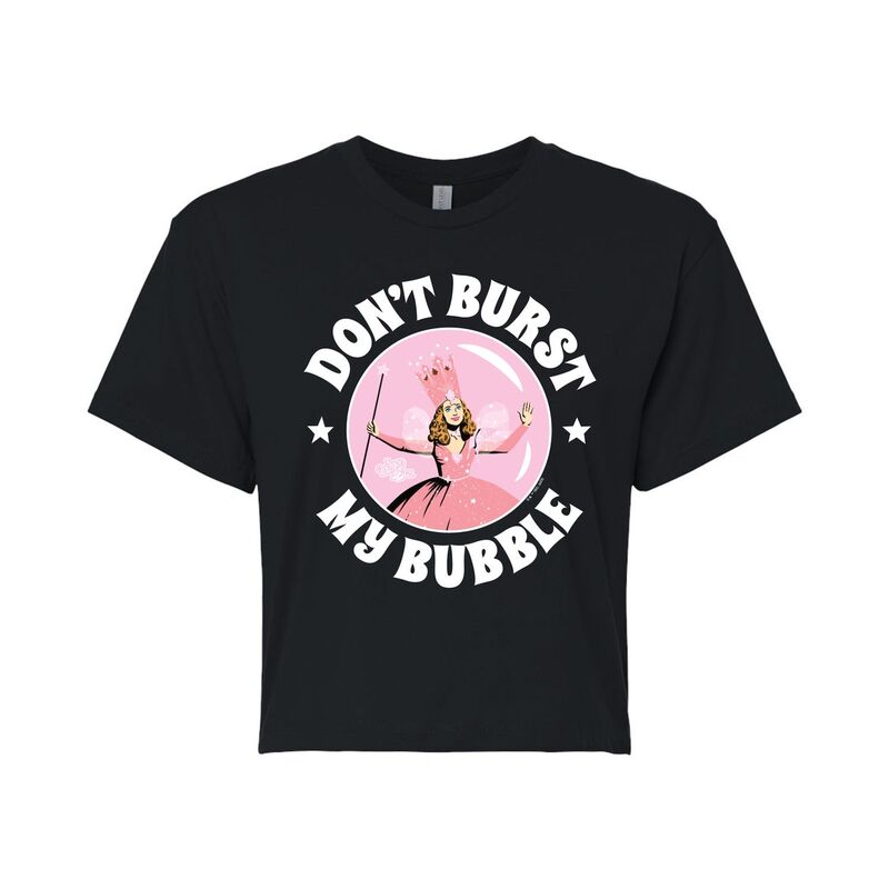 【送料無料】 ライセンス キャラクター レディース Tシャツ トップス Juniors' Wizard Of Oz Don't Burst My Bubble Cropped Tee Black