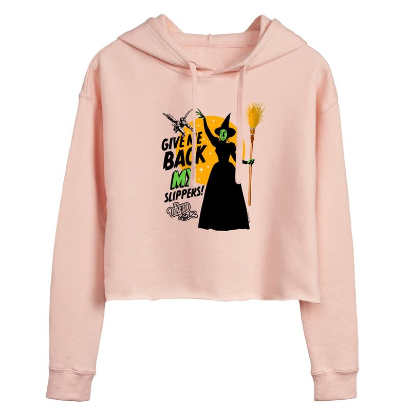 【送料無料】 ライセンス キャラクター レディース Tシャツ トップス Juniors' Wizard of Oz Slippers Cropped Hoodie Pink