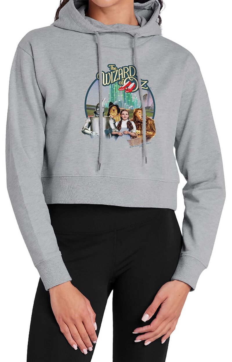 【送料無料】 ライセンス キャラクター レディース Tシャツ トップス Juniors' The Wizard of Oz Off to See the Wizard Cropped Hoodie Gray