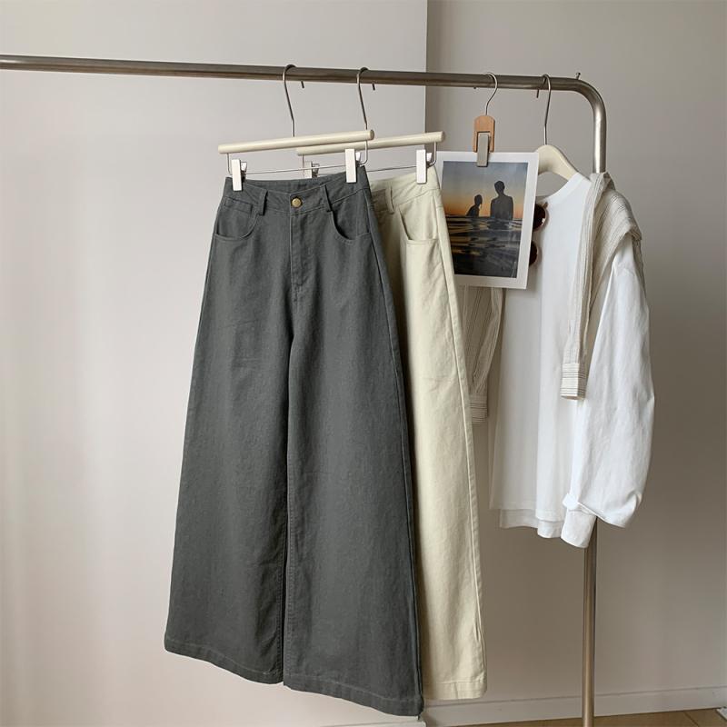 プリーツ ワイドパンツ ニット リラックス ロングパンツ レディース 2025 春の 新型 韓国 レトロ 色 ゆったり 洗 水 ストレート ジーンズの な リラックス 感が。x2