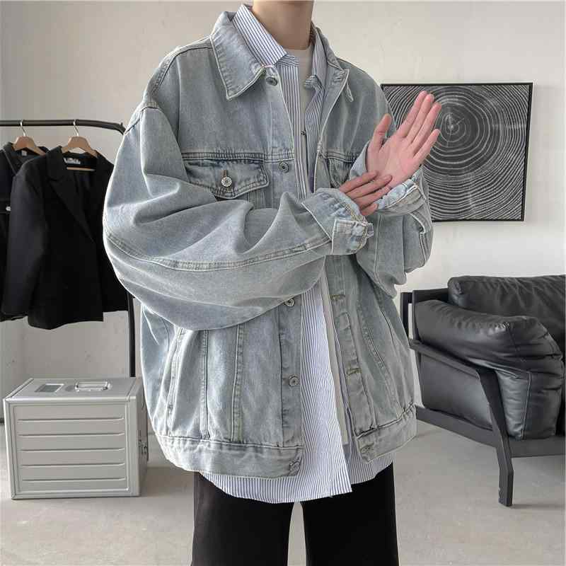 淡色 デニム ジャケット Gジャン メンズ 男性用 春 秋 春物 秋物 ゆったり ルーズフィット ビッグシルエット 大きいサイズ ビッグサイズ ウォッシュ加工 洗い加工 ワークウェア カジュアル おしゃれ ファッション 薄手 アウター ライトアウター