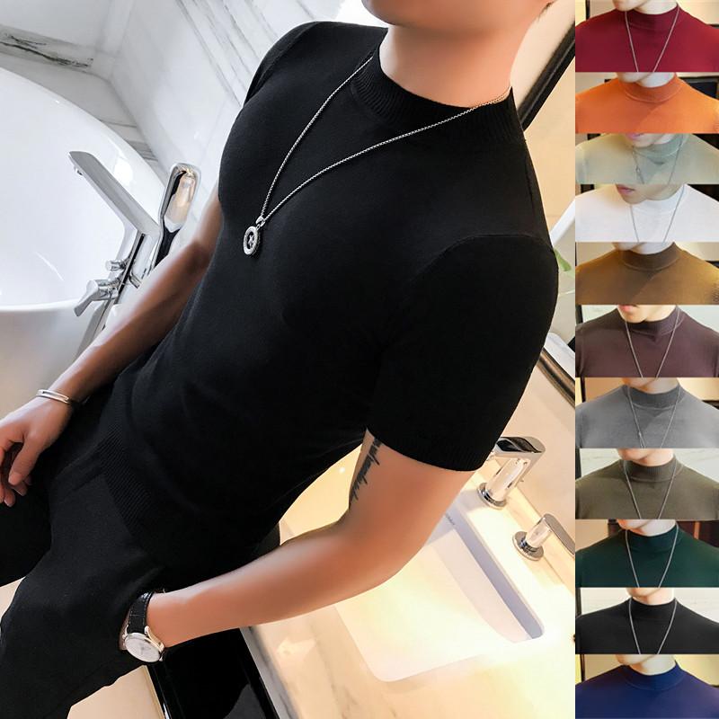 メンズ用 半袖 セーター ニット スリム ハイネック ウール 春秋 カットソー