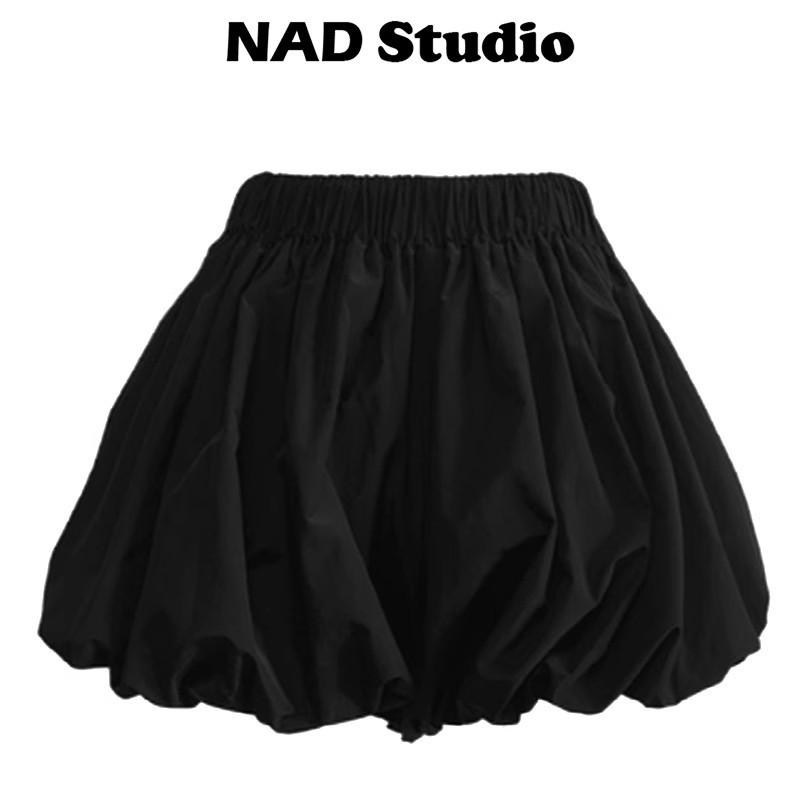 ショートパンツ レディース ブラック 黒 ハイウエスト 細見え Aライン バルーン ボリューム かぼちゃパンツ ペタルヘム キュロット ウエストゴム カジュアル 快適 ふわふわ ポリエステル 中厚手 ストレッチ