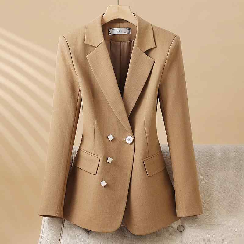 ジャケット レディース 大きいサイズ 秋物 カジュアル 高級感 韓国風 テーラードカラー ダブルボタン 若見え 通勤 オフィス ポリエステル カーキ オレンジ ブラック