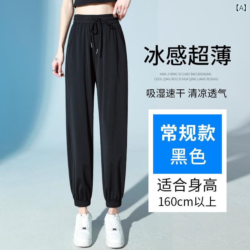 ゆったり イージーパンツ レディース ブラック 冷感 スポーツ パンツ レディース 夏 薄手 九分丈 ゆったり カジュアル 小さめ 日焼け防止 速乾 スウェットパンツ