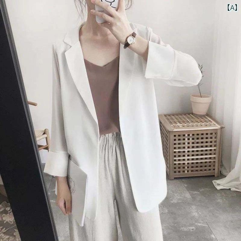 ジャケット レディース 韓国風 アウター シフォン トップス 七分袖 エレガント UVカット 薄手 ノーボタン フリル袖 ポリエステル 春夏 通勤 オフィス カジュアル