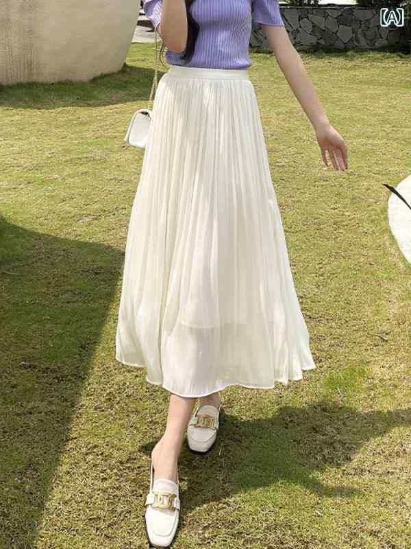 チュールスカート 高級 ストリーマー ヤーン スカート 夏の 新しい スタイル ハイ ウエスト スリム A ライン小さな 妖精 スカート 真珠 光沢の ある メッシュ スカート