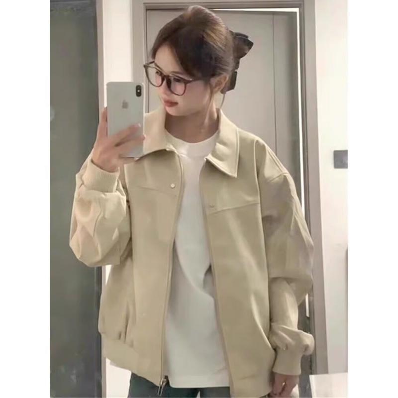 ジャケット レディース アウター 秋冬 レトロ ショート丈 ポリエステル ゆったり 通勤 きれいめ POLO襟 杏色