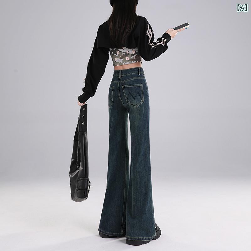 レディース デニム 足長 脚に 張り付かない ハイウエスト ワイド レッグ フレアジーンズ レディース 2025 スモール アメリカン ストリート ストレート パンツ