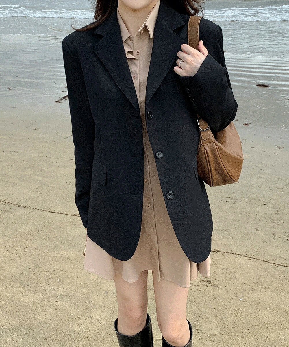 オーバーフィットテーラードカラーシングルジャケット3つボタンロングスリーブブレザー ジャケット シングルブレストジャケット レディース|韓国 wannabemuse|コーディブック