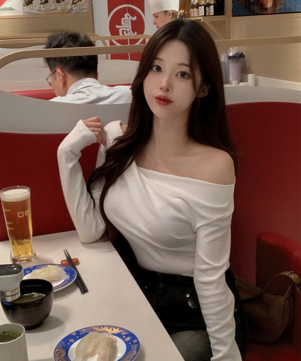 オフショルダーストレッチリブアシンメトリー長袖ロングニット2ウェイレイヤードスリムグラムフィットクロスデイリー ニット セーター レディース|韓国 wannabemuse|コーディブック
