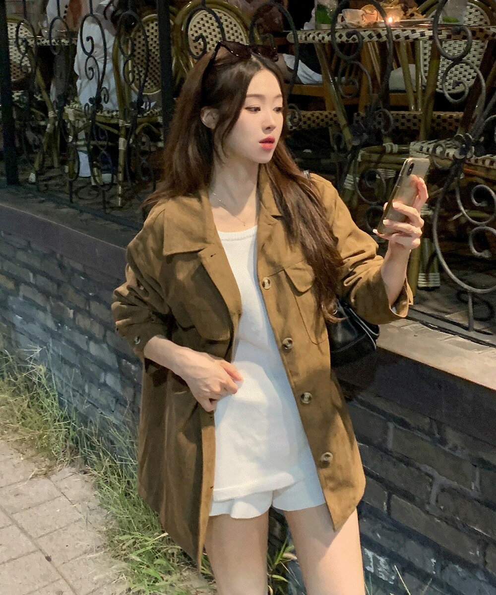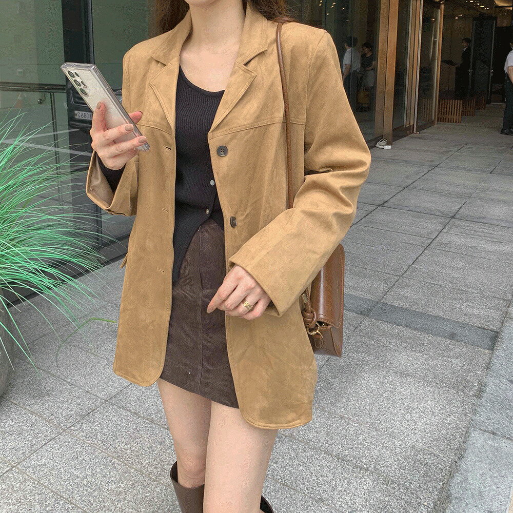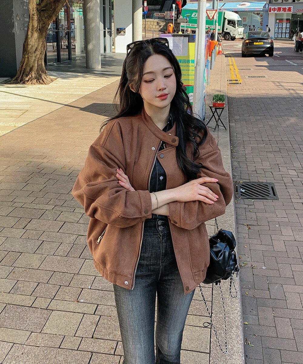 オーバーフィットスウェードジャケットブルゾン ジャケット シングルブレストジャケット レディース|韓国 wannabemuse|コーディブック