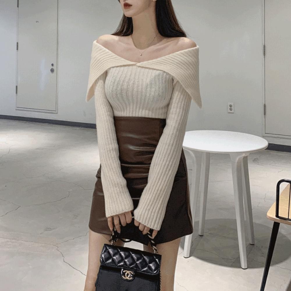 柔らかいセーラーカラーリブVネックスリムニットオフショルダーニットブラウス ニット セーター レディース|韓国 wannabemuse|コーディブック