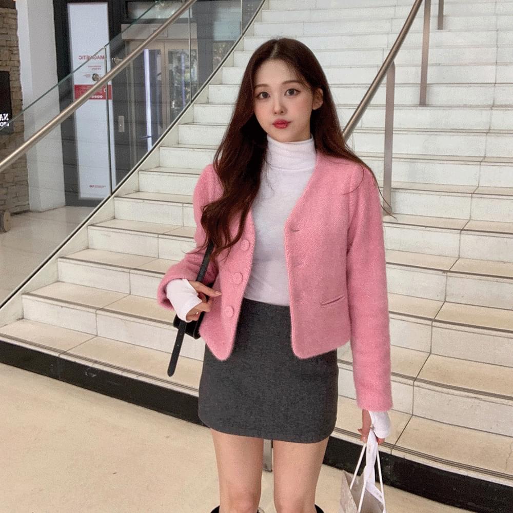 ロマンティックアンゴラファーモヘアノーカラーツイードショートジャケット ジャケット レディース|韓国 wannabemuse|コーディブック