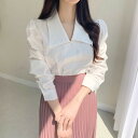 フェミニンビックカラーVネック長袖パフブラウスソラバックアイボリー ブラウス レディース|韓国 wannabemuse|コーディブック