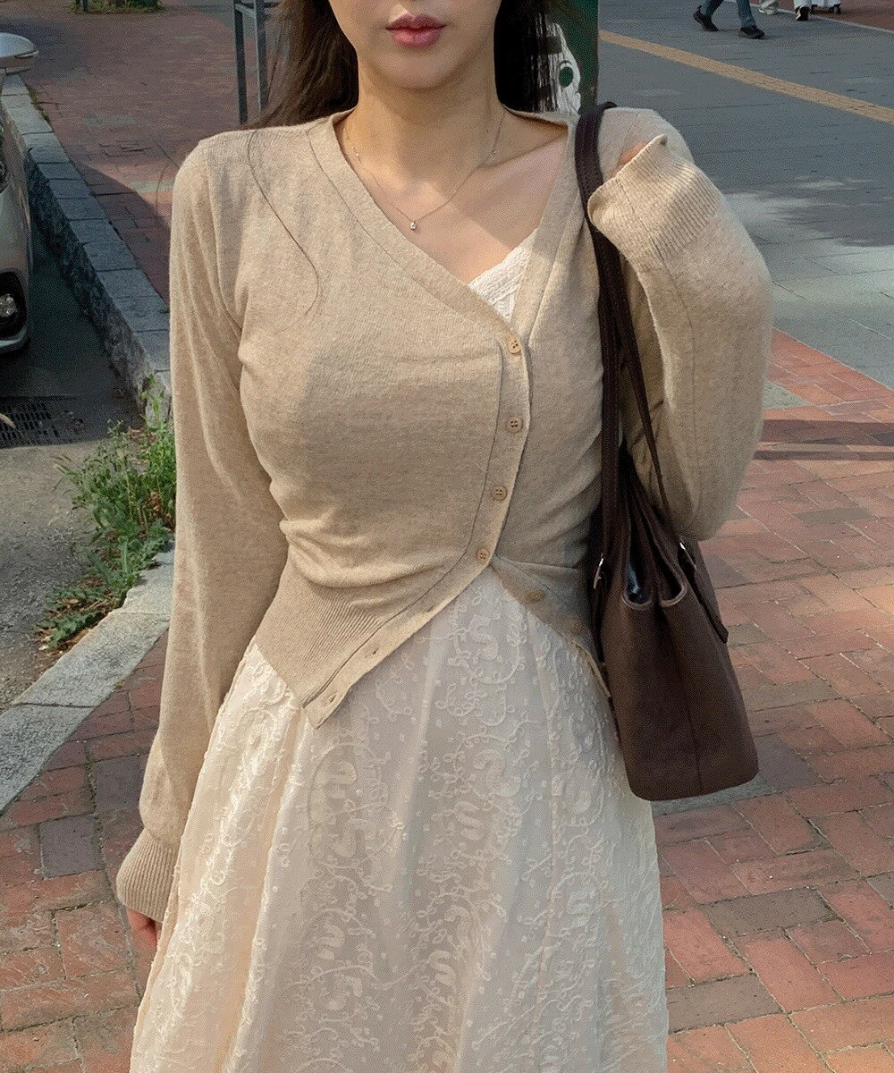 うすやわらかフィット ウール アンバランスカシミアVネックカーディガン カーディガン / ベスト カーディガン レディース|韓国 wannabemuse|コーディブック