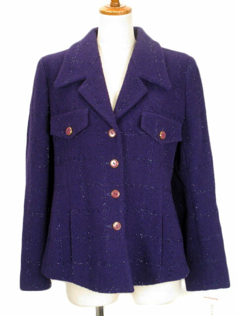 【中古】WEINBERG ジャケット ツイード 格子 ラメ ウール 38 紫 パープル レディース 【ベクトル 古着】 200407 ベクトルプレミアム店