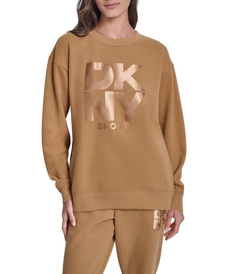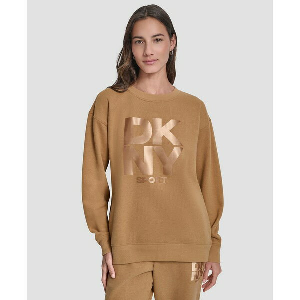 ダナキャラン レディース アウター ニット・セーター クルーネック スウェット シャツ ロゴ DKNY Sport by Donna Karan Coordinating Stacked Transfer Logo Nolita Crew Neck Sweatshirt Whiskey
