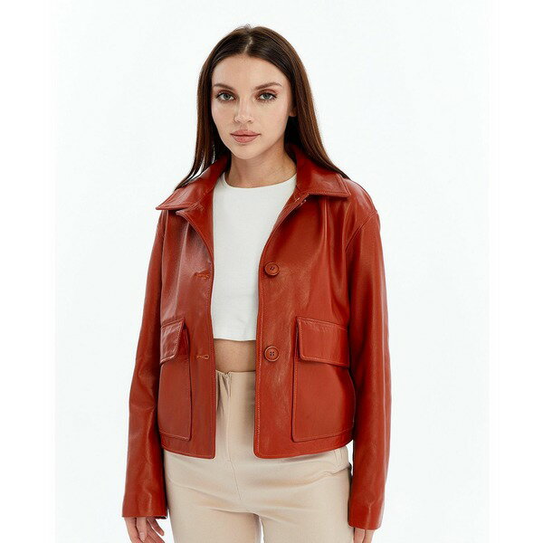 ファーニック ユーケー レディース ジャケット&ブルゾン アウター Women's Cropped Leather Jacket, Created for Macy's Whiskey brown