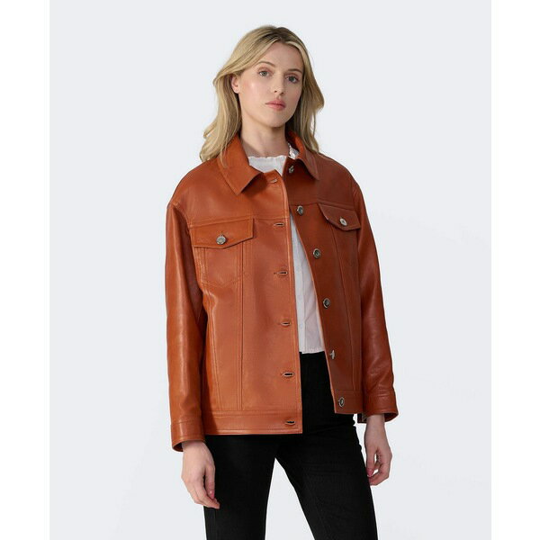 ファーニック ユーケー レディース ジャケット&ブルゾン アウター Women's Leather Shirt Jacket, Created For Macy's Whiskey brown
