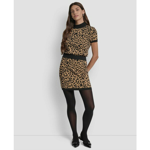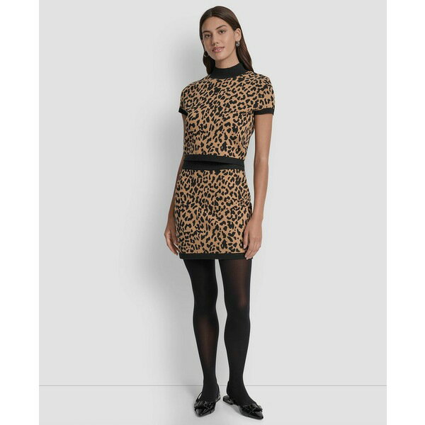 ダナキャランニューヨーク レディース スカート ボトムス Women's Cheetah Jacquard A-line Short Sweater Skirt Whiskey/black