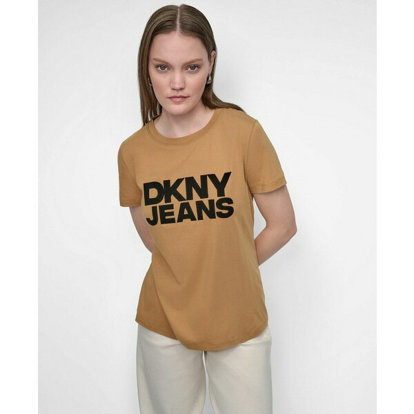 ダナキャランニューヨーク レディース カットソー トップス Women's Flocked Logo Crewneck T-Shirt Black/Whiskey