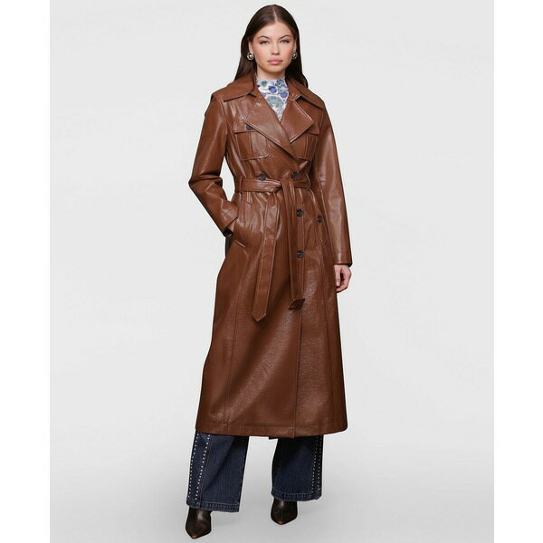 アベックレフィレ レディース ジャケット&ブルゾン アウター Women's Belted Faux-Leather Trench Coat Whiskey