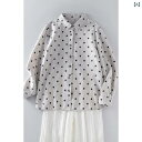 シャツ レディース 春夏 ポロ襟 長袖 ドット柄 ゆったり オーバーサイズ 綿 麻 ポリエステル レトロ ヴィンテージ 大人カジュアル エレガント きれいめ 普段使い 通勤 オフィス 着回し ベージュ