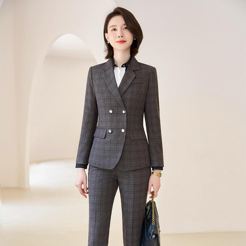 スーツ レディース 秋冬 パンツスーツ チェック柄 エレガント 上品 オフィス ビジネス フォーマル 通勤 制服 ホテルスタッフ 長袖 ポリエステル ビスコース