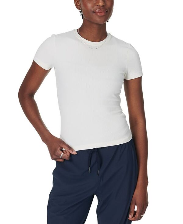 スウェッティベティ レディース トップス Tシャツ クルーネック リブ シャツ Sweaty Betty Women's Explorer Ribbed Crewneck Compression T-Shirt Lily White ホワイト