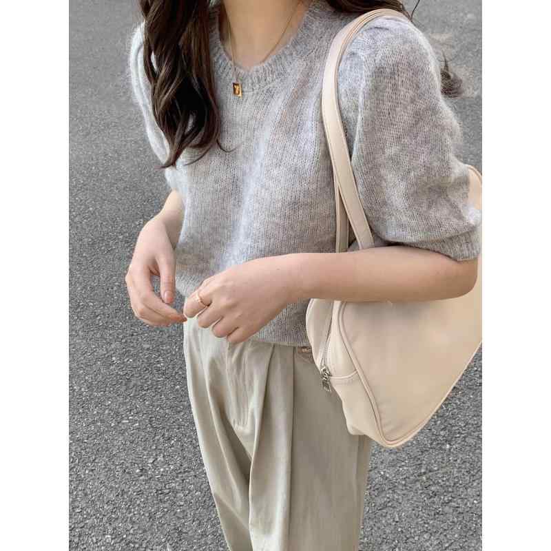 ニット レディース 春 半袖 モヘア ふんわり 柔らかい パフスリーブ トップス ゆったり ラウンドネック かわいい 薄手 フェミニン ガーリー カジュアル