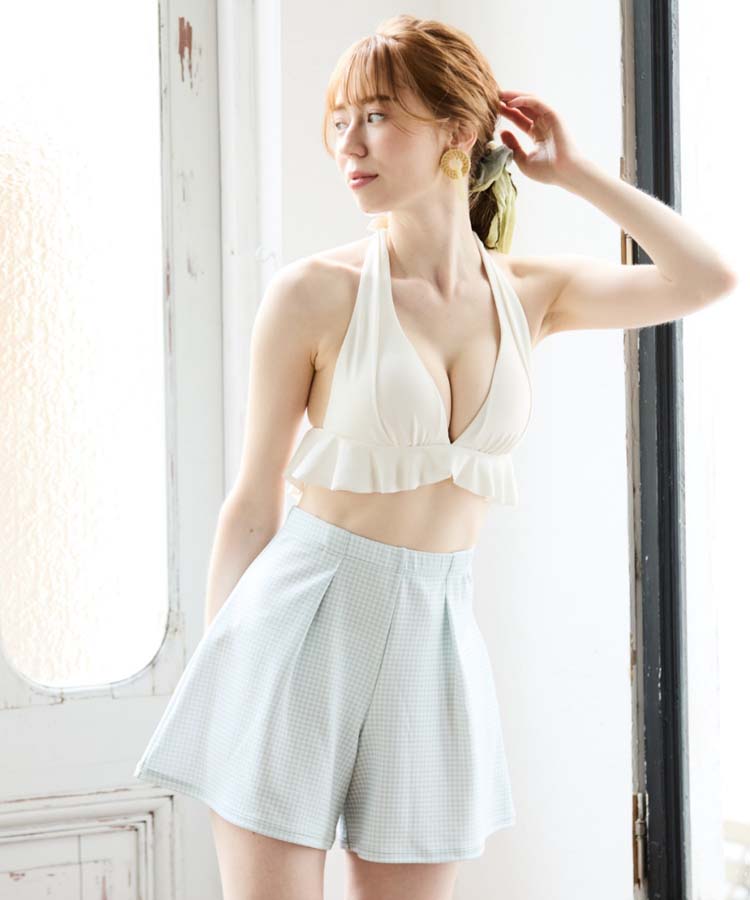 San-ai Resort レーストップス付き4点セット水着 サンアイリゾートノーザリー 水着・スイムグッズ 水着 ベージュ ホワイト【送料無料】
